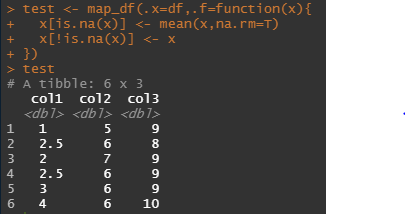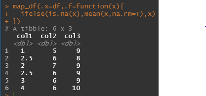 map함수를 이용해 NA로 된 결측치를 각행의 평균값으로 채워주었습니다.