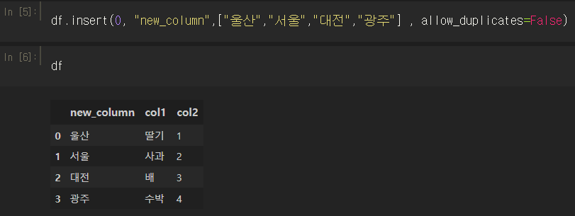 여기서 인덱스 대신 column명을 이용해 원하는 column의 앞뒤에 column을 추가해 보겠습니다.