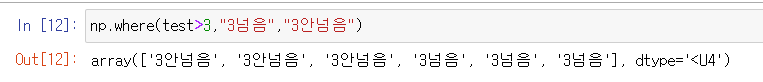 비슷하게 np.where(조건,True면 반환, False면 반환)으로 구현할 수 있습니다.